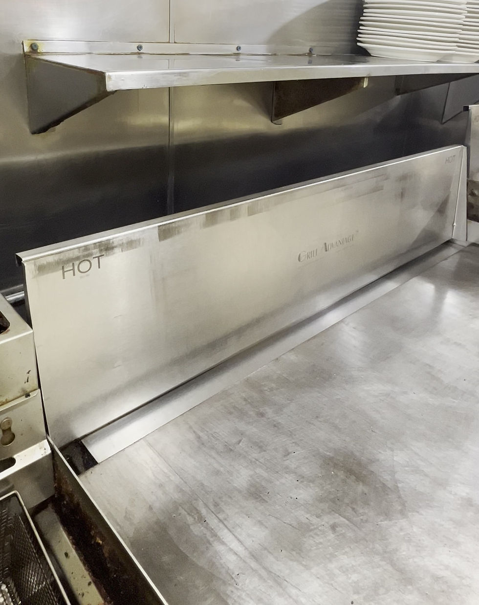 The Pan Holder Accessory mounts to the top edge of the backsplash extender. Heat from the griddle holds contents at the right temp and eliminates contamination of pan contents. Keeps sauces and butters easy-to-reach. Takes 1/3 Pan OFF the griddle to maximize cooking surface.